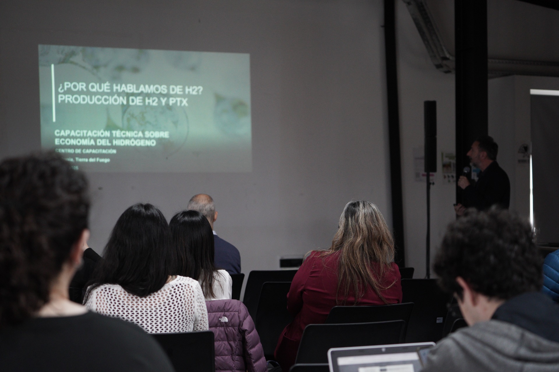 La capacitación forma parte de una iniciativa conjunta —que tuvo su primera edición el pasado martes en la ciudad de Río Grande—, cuyo objetivo es introducir los conceptos fundamentales de la cadena de valor del hidrógeno, abordar herramientas técnicas y promover el debate en torno a las oportunidades y desafíos que representa para la Argentina —y especialmente para la región patagónica— el desarrollo de la industria del hidrógeno verde. La jornada contó con la participación de estudiantes y docentes universitarios.